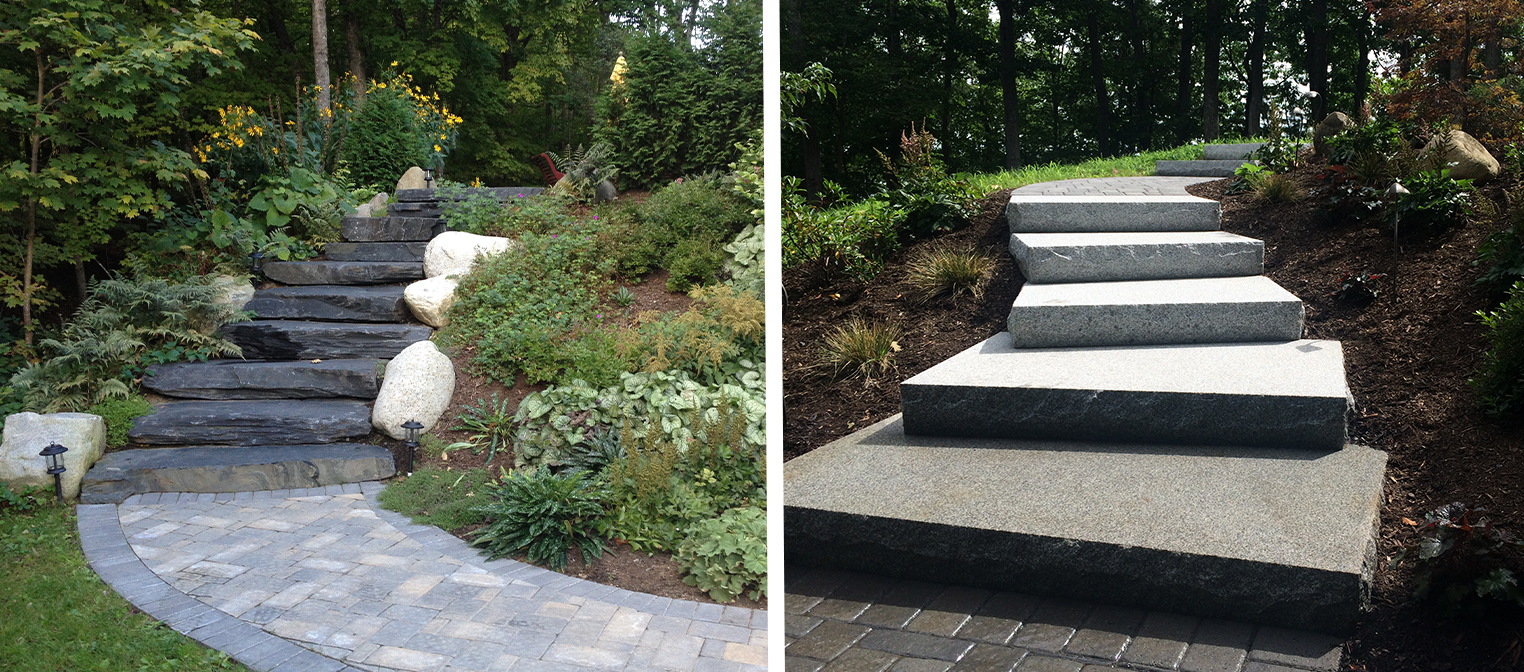 Trying to decide between granite and natural steps? Granite offers a clean, uniform look that works well for a more polished, formal style, while natural stone provides a rustic, organic feel that blends seamlessly into the landscape. It all comes down to whether you want a structured finish or something that looks naturally part of your property.